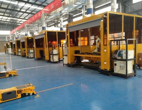 2018-06由科慧科技打造的該條畜牧設(shè)備柔性自動(dòng)化生產(chǎn)線,運(yùn)用24臺(tái)工業(yè)焊接機(jī)器人、12套工作站、2臺(tái)全自動(dòng)激光切割機(jī)、2臺(tái)全自動(dòng)沖弧口機(jī)、3臺(tái)自動(dòng)切管機(jī)、4套智能AGV小車物流搬運(yùn)系統(tǒng)、5臺(tái)自動(dòng)彎管機(jī)、...